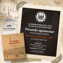 JU Gradska biblioteka Tivat, u suradnji s Maticom hrvatskom – Ogranak u Boki kotorskoj, poziva vas na promociju knjige „Tivatski spomenar “, autorice Marije Mihaliček.