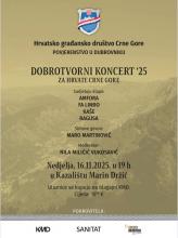 Hrvatsko građansko društvo Crne Gore – Povjerenstvo u Dubrovniku, organizira Dobrotvorni koncert ‘25 za Hrvate Crne Gore, koji će se održati u nedjelju, 16. studenoga 2025. godine, u 19 sati, u Kazalištu Marina Držića u Dubrovniku.
