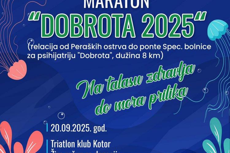 Drugi humanitarni plivački maraton „Dobrota 2025.“ održat će se sutra, u subotu, 20. rujna 2025., u organizaciji Triatlon kluba Kotor i Sportsko-rekreacijskog društva (SRD) „Open Water“ iz Budve, a u partnerstvu sa Specijalnom psihijatrijskom bolnicom „Dobrota“.