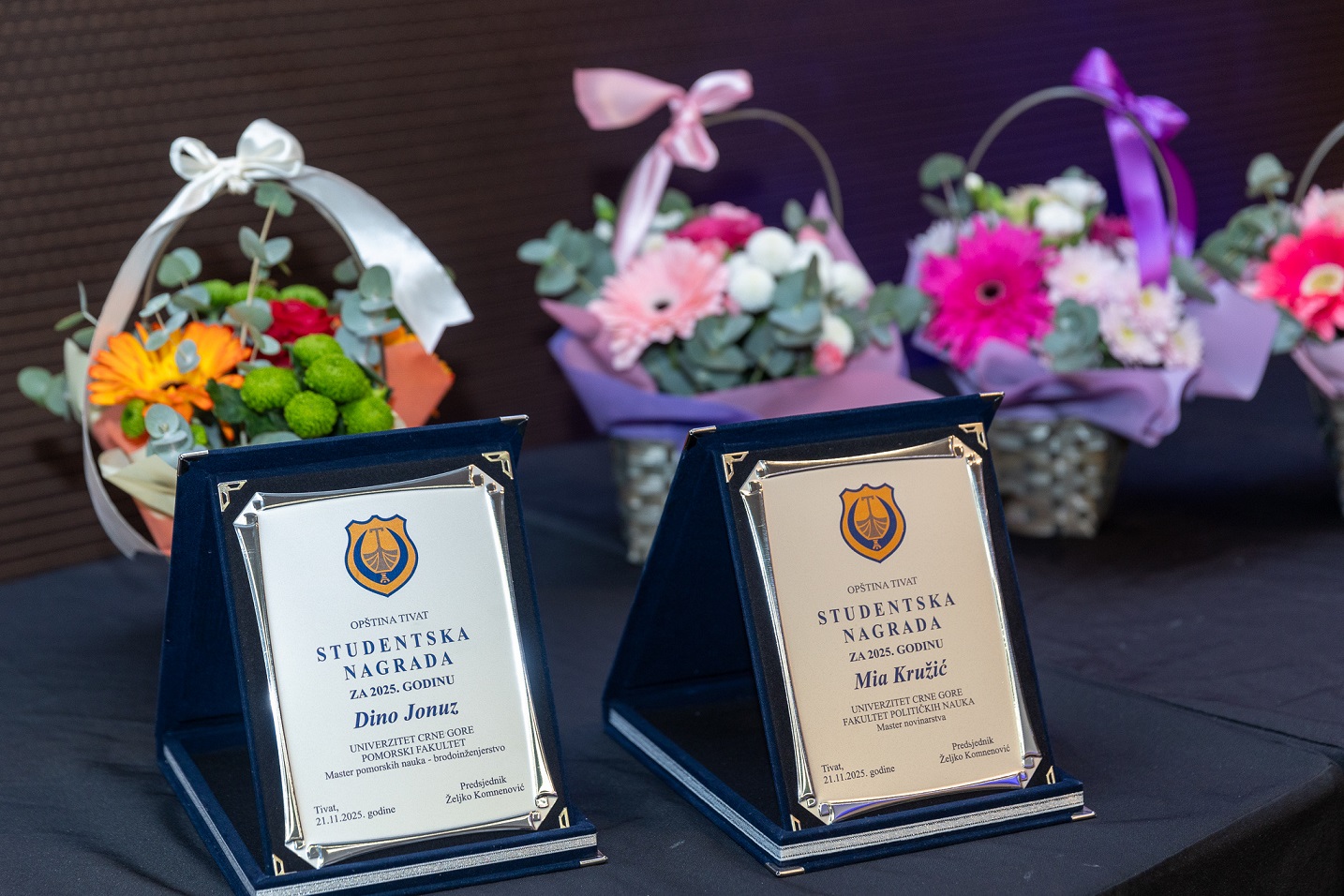 Tijekom svečanog zasjedanja proglašeni su dobitnici Studentske nagrade, a ove godine to su Dino Jonuz (Pomorski fakultet Kotor, Univerzitet Crne Gore, prosjek 9,89) i Mia Kružić (Fakultet političkih nauka, Univerzitet Crne Gore, prosjek 10,00). „Priznanje koje danas stičemo podstrek je za budućnost, za svaki naredni korak koji ćemo napraviti i za sva nova znanja koja ćemo na tom putu steći. Ono je i podsjećanje da se u današnjem svijetu koji usvaja neke nove sisteme vrijednosti još uvijek cijene talenat, marljivost i disciplina.” – rekla je u ime nagrađenih Mia Kružić.