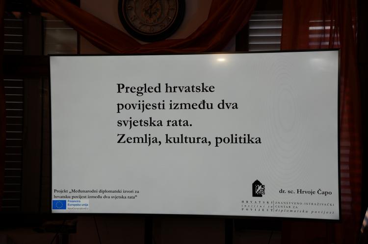Nazočne je na početku večeri pozdravio dr. sc. Gordan Ravančić, pomoćnik ravnatelja Hrvatskog instituta za povijest. Dr. Čapo je svoje istraživačke interese usmjerio na hrvatsku društvenu i političku povijest u međuratnom razdoblju, s posebnim naglaskom na represivne politike monarhističke Jugoslavije te na međunarodni kontekst, uključujući diplomaciju Sjedinjenih Američkih Država prema hrvatskom pitanju.