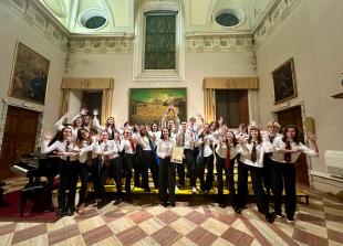 Združeni zbor Gimnazije Andrije Mohorovičića Rijeka i Prve riječke hrvatske gimnazije, pod vodstvom profesorice Helge Dukarić Dangubić, prof.