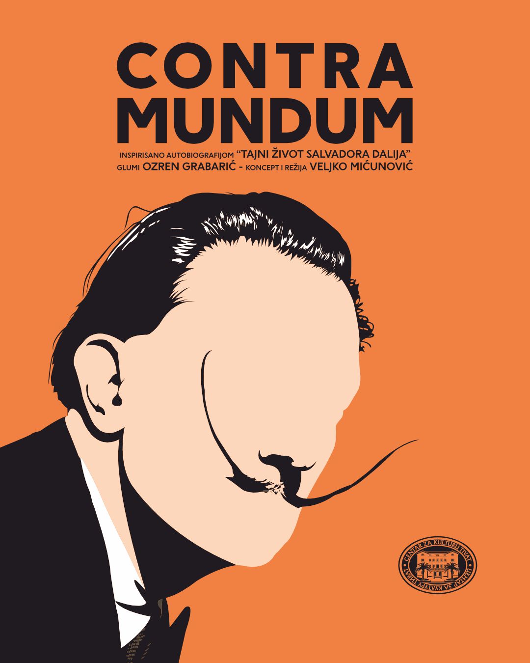 "Njegova ekscentrična pojava i šokantni stavovi u javnosti izazivali su podijeljena mišljenja, ali su ga i proslavili... Salvador Dali. Genije ili šarlatan? Proročka slika savremenog svijeta ili puka diverzija svakog pravila, poretka, ideologije...? “Contra Mundum nije predstava po biografiji velikog umjetnika, već igra sa zagonetkom o umjetnosti života na ovom svijetu.”