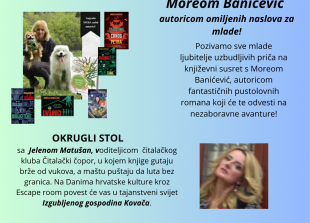 Pročitajte višeU sklopu projekta „Dani hrvatske kulture u Crnoj Gori “, učenici u Crnoj Gori imali su priliku družiti se s poznatom hrvatskom književnicom Rosie Kugli, autoricom brojnih romana za mlade i odrasle.